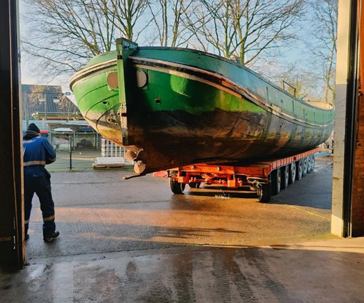 Skûtsje Nooit Gedacht naar binnen voor restauratie